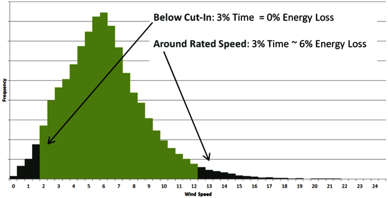 Taking into account that the turbines are likely to suffer downtime under heavy duty, the loss percentage of energy production is likely to be higher than time based downtime percentage.